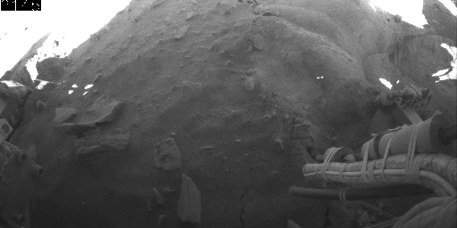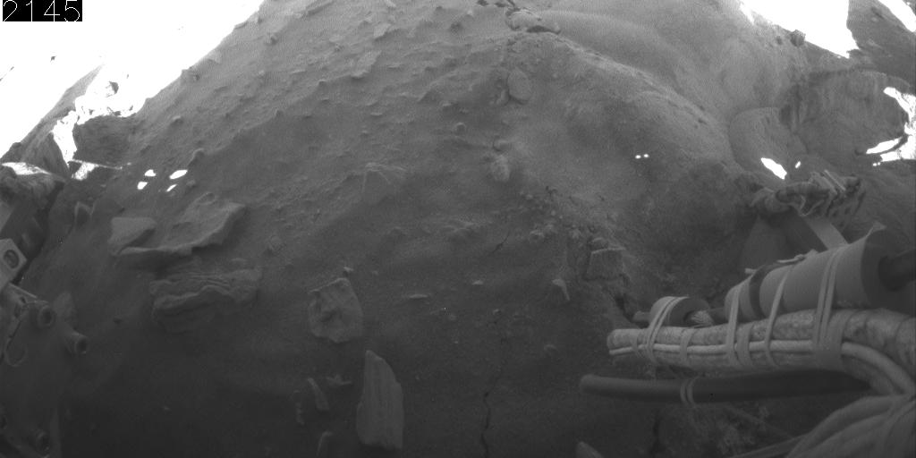 The series of wide-angle views shown one after the other in this animation come from Spirit's rear hazard-avoidance camera.