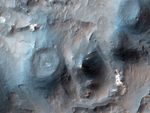 These features were first seen in Context Camera image D01_027538_1674_XN_12S062W and a HiRISE target was suggested by a member of that team using HiWish. The cones might look like craters in single images, but if you look at the stereo anaglyph, you'll see the cones stick up and are clearly not the same shape as impact craters.
