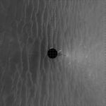 NASA's Mars Exploration Rover Opportunity set a one-day distance record for martian driving on the rover's 383rd martian day, or sol, which began on Feb. 19, 2005. Opportunity rolled 177.5 meters (582 feet) across the plain of Meridiani on that sol. It used its navigation camera after the drive to take the images that are combined into this mosaic view. The view is presented here in a vertical projection with geometric seam correction.