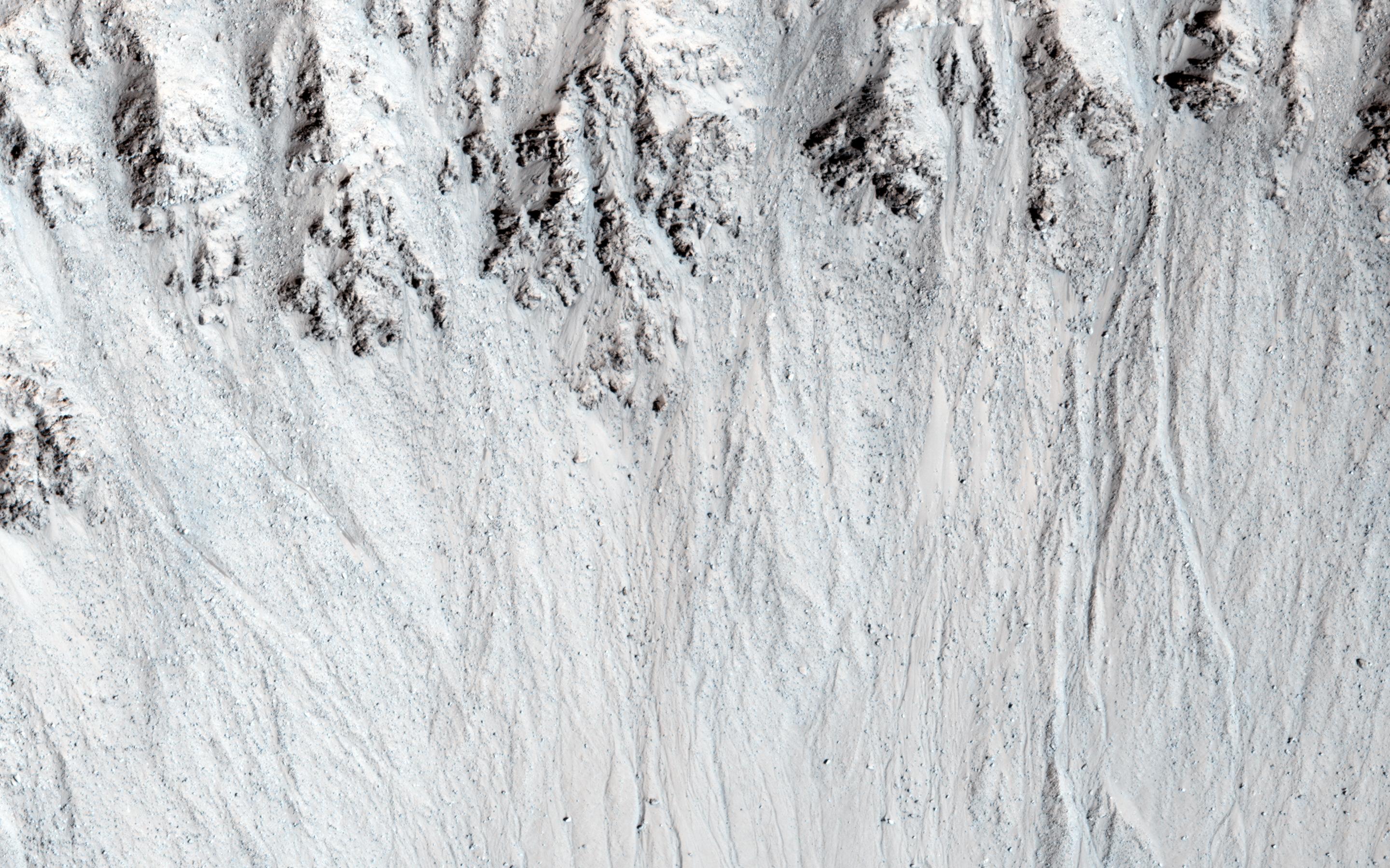 This image covers Raga Crater, the location of well-studied recurring slope lineae (RSL). RSL are dark flows that disappear and re-form every Mars year at certain locations.