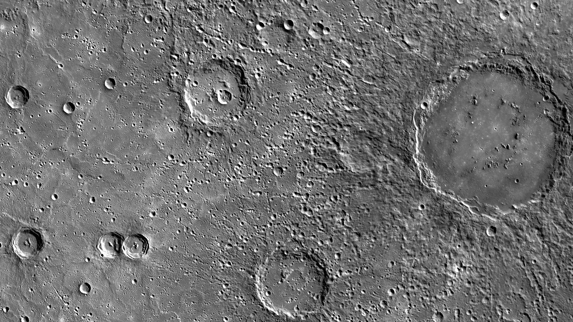 This image shows the large Rustaveli basin on the right portion of the view. Named in 2012 after Shota Rustaveli (1172-1216), a Georgian poet of the 12th century, this basin has a smooth floor and hints of a peak-ring structure. In particular, this mosaic shows details of Rustaveli's well-preserved ejecta field.