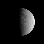 The view looks toward terrain near the north pole of Enceladus (504 kilometers, or 313 miles across) from 48 degrees above the moon's equator. Lit terrain seen here is on the moon's Saturn-facing side. North is up and rotated 16 degrees to the left.