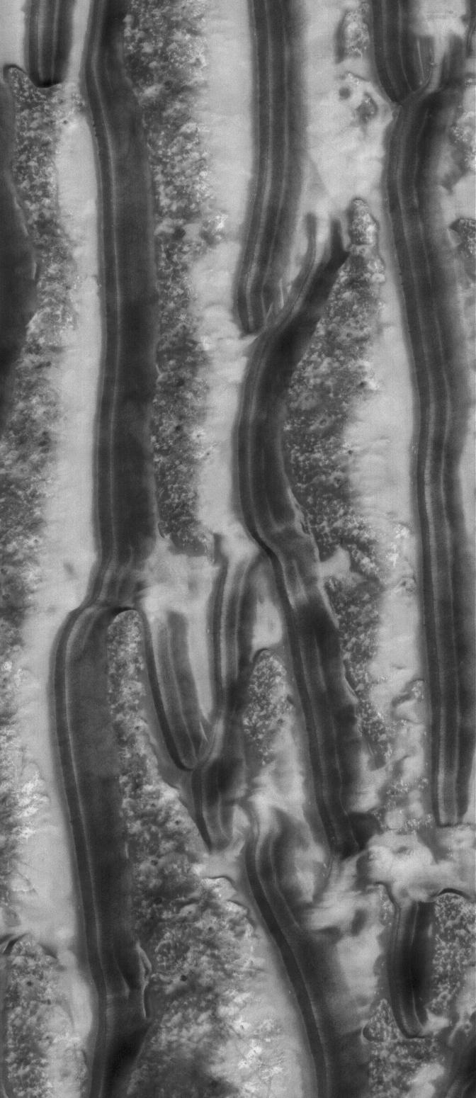 This Mars Global Surveyor (MGS) Mars Orbiter Camera (MOC) image shows a summertime view of sand dunes in Richardson Crater in the Mare Chromium region of the martian southern hemisphere.