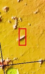 The ridge in the center of this image occurs on the plains north of Reull Vallis. No other ridges occur in the region. The debris on the southern slope of the ridge has flow-type features which may indicate the ice is present.