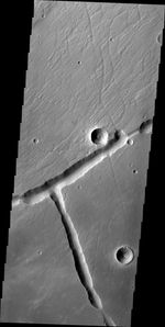 Right angles are not common in nature. They are almost always formed by tectonic forces. This right angle on Mars is part of Sacra Fossae.