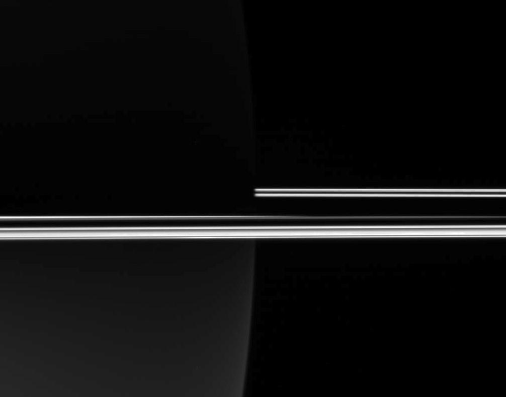 The Cassini spacecraft looked toward the darkened night side of Saturn to capture the eerie glow of the rings, which, not being blocked by the planet's bulk, remained brilliant in full sunlight.