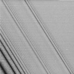 This image shows three density waves in Saturn's A ring. It was taken by the narrow angle camera on the Cassini spacecraft after successful entry into Saturn's orbit. The view shows the dark, or unlit, side of the rings.