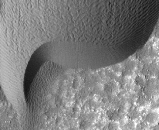 This is one of several sites where the orbiter has observed shifting sand dunes and ripples. Previously, scientists thought sand on Mars was mostly immobile. It took the mission's High Resolution Imaging Science Experiment (HiRISE) to take sharp enough images to finally see the movement.