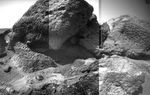 This image mosaic of part of the "Rock Garden" was taken by the Sojourner rover's left front camera on Sol 71 (September 14). The rock "Shark" is at left center and "Half Dome" is at right. Fine-scale textures on the rocks are clearly seen. Broken crust-like material is visible at bottom center.