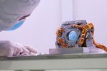 An engineer at NASA's Jet Propulsion Laboratory is shown here with the fast steering mirror, a component of the Coronagraph Instrument on NASA's Nancy Grace Roman Space Telescope. The mirror can make small movements that correct for slight wobbling of the observatory. The incoming image needs to be perfectly sharp in order for the instrument to suppress light from a star while allowing the light from planets orbiting it to pass through. Although the technologies differ, it's analogous to image stabilization in digital cameras, in which the camera lens moves to counteract the shake of your hands and keep the image sharp.