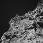 Some relatively rough terrain on the nucleus of comet 67P/Churyumov-Gerasimenko appears in this image taken by the navigation camera on the European Space Agency's Rosetta spacecraft during the second half of October 2014. The spacecraft has been orbiting this comet since August 2014 and will release its lander, Philae, on Nov. 12 to land on the comet's nucleus.