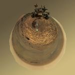 This version of a self-portrait of NASA's Curiosity Mars rover at a drilling site called "Buckskin" on lower Mount Sharp is presented as a stereographic projection, which shows the horizon as a circle.