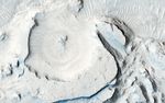 These rounded, mysterious mounds occur along the floor of a depression in northern Arabia Terra. The mound surface has many parallel troughs that contain light-toned transverse aeolian (e.g., formed by the wind) ridges oriented perpendicular to the trough walls.
