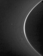 At the beginning of the sequence, the ring arc, a site of concentrated ring particles, is seen rounding the ring edge.