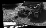 This picture taken by the IMP (Imager for Mars Pathfinder) aboard the Mars Pathfinder spacecraft depicts the rover Sojourner's position after driving onto the Martian surface. Sojourner has become the first autonomous robot ever to traverse the surface of Mars. This image reflects the success of Pathfinder's principle objective -- to place a payload on Mars in a safe, operational configuration.