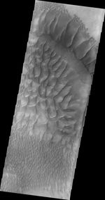 Today's VIS image shows part of the large sand sheet and dune forms on the floor of Russell Crater.