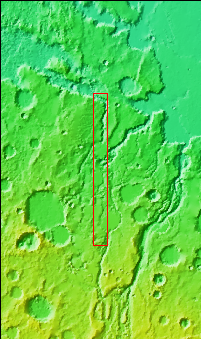 The extensive channel system seen is this VIS image include parts of both Sabis Vallis and Minio Vallis. The valles are just two of many channels that flow northward thru Terra Sirenum to empty into Amazonis Planitia. Sabis Vallis is 206km long (128 miles) and Minio Vallis is 88km long (55 miles). Both channels are located west of the much larger Mangala Valles.