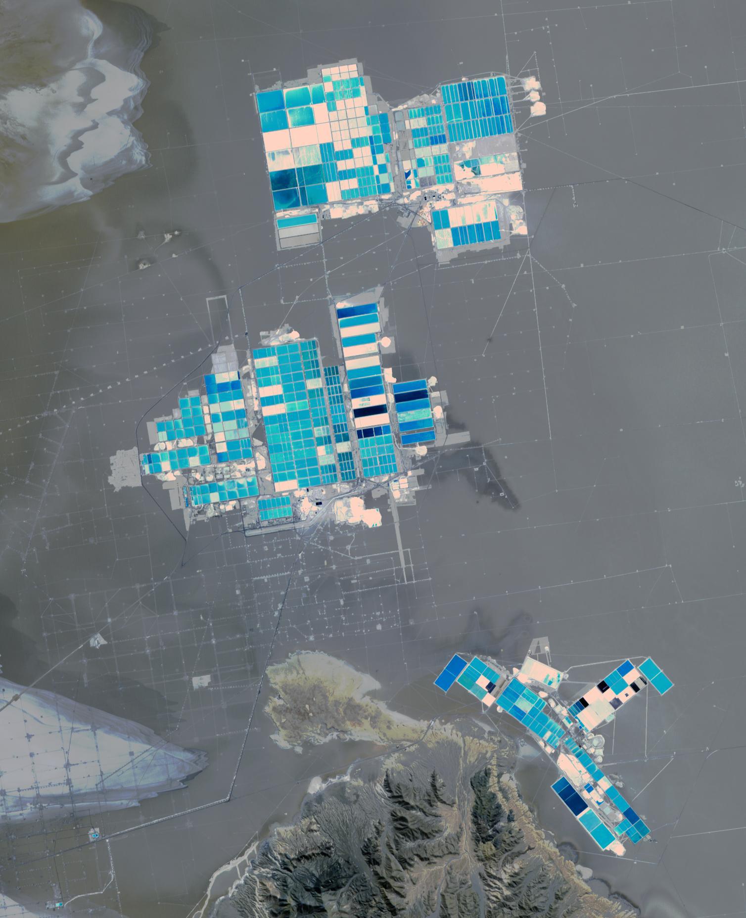 Salar de Atacama (Atacama salt flats) in Chile's Atacama Desert receives 2 mm rain per year. Its attraction are the brines 40 m below ground. They are pumped to the surface into large evaporation pans. After the water has vanished, a yellowish greasy solution is left behind that contains lithium. In fact, Salar de Atacama produces 27% of the world's annual supply. Mining lithium here is less expensive to produce than from neighboring Salar de Uyuni, which is estimated to have half of the lithium reserves in the world. The image was acquired August 21, 2017, covers an area of 22.5 by 27.8 km, and is located at 23.5 degrees south, 68.3 degrees west.