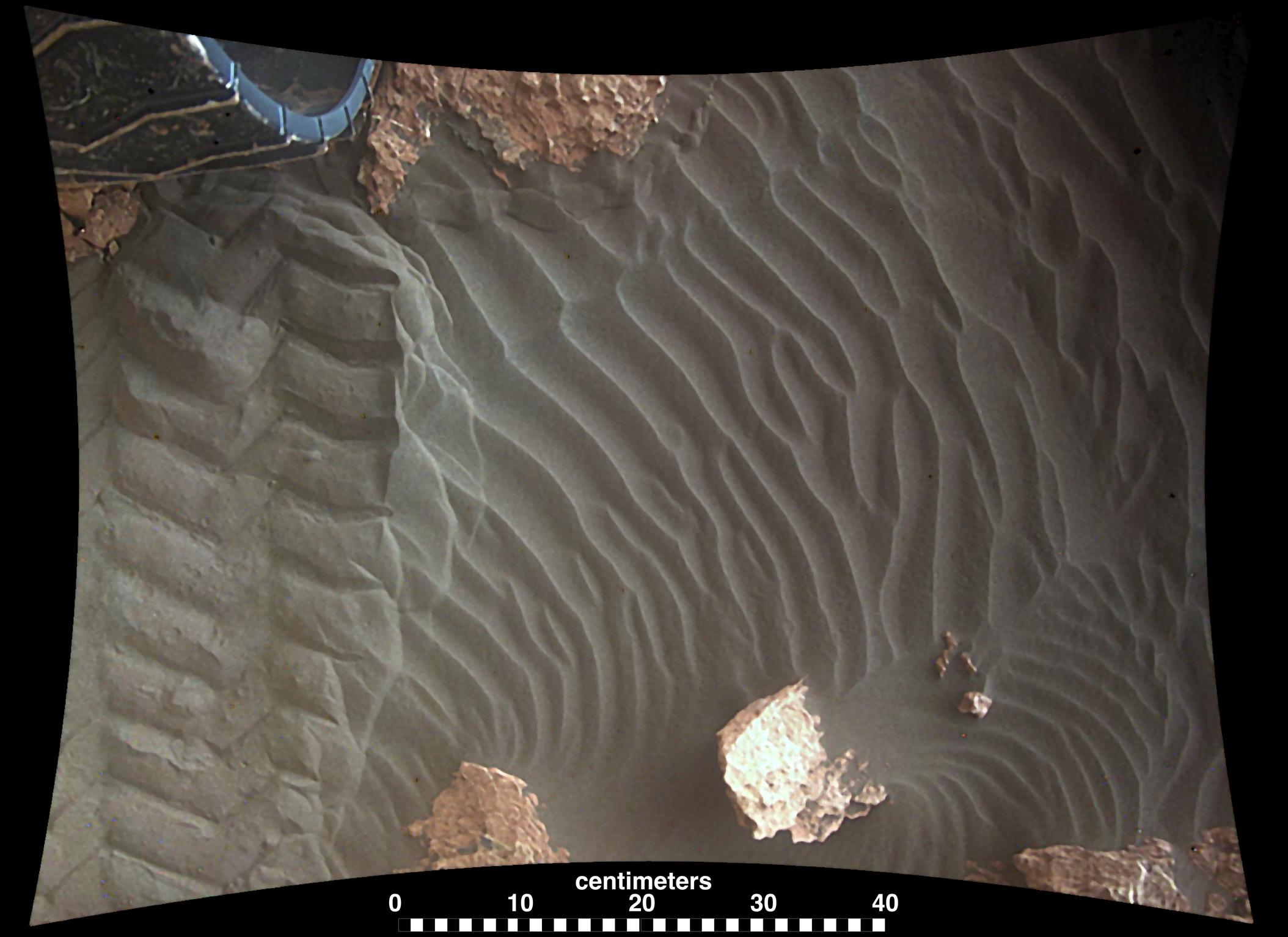 The pair of images in this animation shows effects of one Martian day of wind blowing sand underneath NASA's Curiosity Mars rover on a non-driving day for the rover. Each image was taken just after sundown by the rover's downward-looking Mars Descent Imager (MARDI). The area of ground shown in the images spans about 3 feet (about 1 meter) left-to-right.