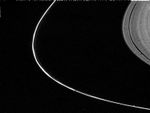 This narrow-angle camera image of Saturn's F Ring was taken through the Clear filter while at a distance of 0.75 million km from Saturn on 12 November 1980. The kinks and braids of this tightly-constrained ring are visible along with the outer edge of the A Ring. JPL managed the Voyager Project for NASA's Office of Space Science.