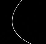 The three separate components of Saturn's F-ring are seen in this image taken by NASA's Voyager l on Nov. 12, 1980, from a range of 750,000 kilometers (466,000) miles. Two prominent bright strands appear twisted and kinked, while the fainter, innermost third strand largely lacks such non-uniformities. The kinking appearance of the ring may be caused by the gravitational perturbations of two nearby satellites -- S-13 on the outside and S-14 on the inside -- or the effect may be caused by electromagnetic forces upon small F-ring particles. The Voyager project is managed for NASA by the Jet Propulsion Laboratory, Pasadena, Calif.