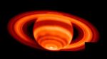 This is the sharpest image of Saturn's temperature emissions taken from the ground; it is a mosaic of 35 individual exposures made at the W.M. Keck I Observatory, Mauna Kea, Hawaii on Feb. 4, 2004.