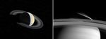 The image on the left was taken on Nov. 1, 1980, by NASA's Voyager spacecraft from a distance of 5.3 million kilometers (3.3 million miles). It shows a very strong narrow shadow cast on the equatorial region of Saturn's atmosphere by the rings. During the Voyager encounters, the Sun was close to the plane of the rings so that the ring shadow was very deep and localized to low latitudes.