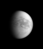 Although this image is centered on the Saturn-facing hemisphere of Titan, here the sun illuminates mainly the trailing hemisphere of Saturn's largest moon.