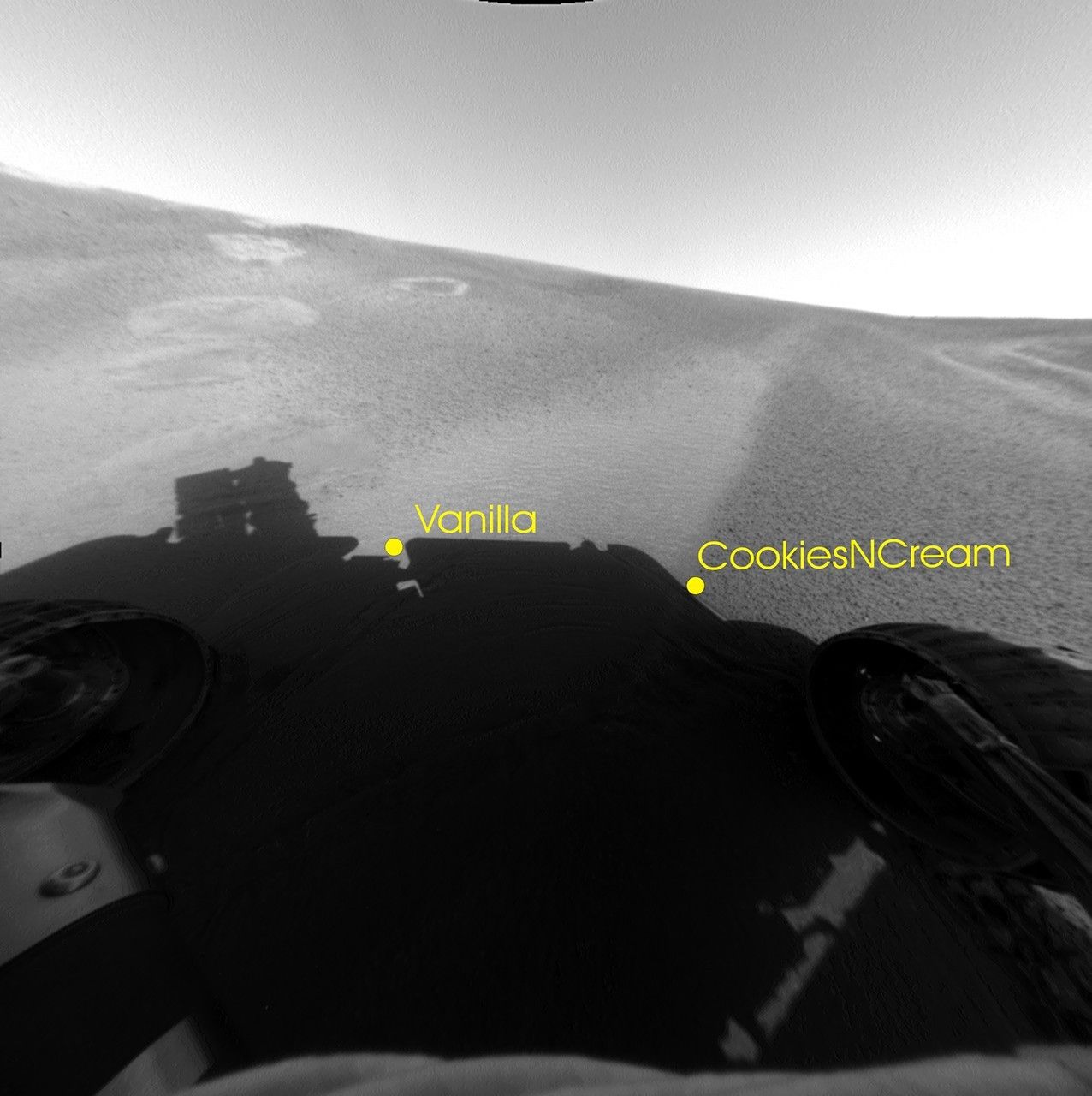 In Figure 1 above, the light soil unit, seen on the left, is a microscopic imager target dubbed "Vanilla." The dark soil unit on the right is a target dubbed "Cookies 'n' Cream.