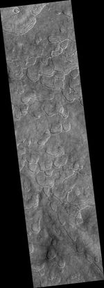Image PSP_001331_2260 was taken by the High Resolution Imaging Science Experiment (HiRISE) camera onboard the Mars Reconnaissance Orbiter spacecraft on November 8, 2006. The complete image is centered at 45.6 degrees latitude, 93.7 degrees East longitude. The range to the target site was 298.4 km (186.5 miles). At this distance the image scale is 29.9 cm/pixel (with 1 x 1 binning) so objects ~90 cm across are resolved. The image shown here has been map-projected to 25 cm/pixel and north is up. The image was taken at a local Mars time of 3:19 PM and the scene is illuminated from the west with a solar incidence angle of 49 degrees, thus the sun was about 41 degrees above the horizon. At a solar longitude of 132.2 degrees, the season on Mars is Northern Summer.