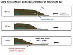 NASA's Curiosity Mars rover has made measurements indicating that the Cumberland rock target the rover drilled in May 2013 has been exposed at the surface for about 80 million years. Further ago than that, the drill site was covered with about 10 feet (3 meters) of rock, as depicted in the top panel. At about 80 million years (middle panel), Cumberland was exposed as the scarp retreated due to abrasion by windblown sand. The sideways erosion, or retreat, occurred at an average rate of about 3 feet (1 meter) per million years.