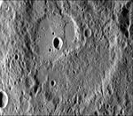 The scarp in this 35-kilometer crater (See PIA02433 for the location in a larger view) forms a broad lobe 10 kilometers wide, whose southern end abuts against and follows closely the irregular contour of the crater wall. These structural relations suggest the scarp is a flow front rather than a fault.