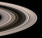 Images taken using red, green and blue spectral filters were combined to create this natural color view. Bright clumps of material in the narrow F ring moved in their orbits between each of the color exposures, creating a chromatic misalignment in several places that provides some sense of the continuous motion within the ring system.