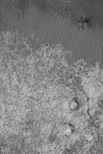 Schiaparelli Basin is a large, 470 kilometer (~292 miles) impact crater located east of Sinus Meridiani. The basin might once have been the site of a large lake--that is, if the sedimentary rocks exposed on its northwestern floor were deposited in water. This Mars Global Surveyor (MGS) Mars Orbiter Camera (MOC) image shows a 1.5 meter per pixel (5 ft per pixel) view of some of the light-toned, finely-bedded sedimentary rocks in northwestern Schiaparelli. The image is located near 1.0°S, 346.0°W, and covers an area about 3 km (1.9 mi) wide. Sunlight illuminates the scene from the left.