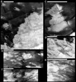 Image (f) shows a region near the northwestern edge of Xanadu where the boundary between the bright and dark materials is quite complicated. Here some of the bright patches appear as if they represent thin surface plates that have been broken apart and spread apart over underlying dark material.
