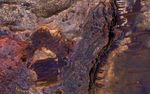 There are diverse rock compositions, as we can see in an enhanced-color cutout. This image completes a stereo pair, so be sure to view the stereo anaglyph.