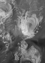 This Mars Global Surveyor (MGS) Orbiter Camera (MOC) image shows a butte and several other landforms eroded into light-toned, layered, sedimentary rock in southern Melas Chasma. Melas is part of the vast Valles Marineris trough system.