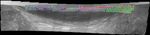 Surface composition in "Endurance Crater" is mapped with color-coded interpretation of data from the miniature thermal emission spectrometer on NASA's Mars Exploration Rover Opportunity. The information has been overlaid onto a view of the crater from Opportunity's panoramic camera. Green, such as on some slopes, indicates material rich in the mineral hematite. Blue and purple, such as on some cliffs of exposed rock, indicate the presence of basalt. Basaltic material is volcanic in origin, but the basalt may have been broken down into sand by weathering, then re-deposited by wind or water. Red indicates areas covered by martian dust.