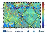 This graphic, released on Dec. 10, 2020, shows the first sea level measurements taken by Sentinel-6 Michael Freilich (S6MF), which launched Nov. 21, 2020. It focuses on the ocean off the southern tip of Africa, where red colors indicate higher sea level relative to blue areas, which are lower. Also included are sea surface height measurements from three other satellites for comparison: Jason-3 (JA3), Sentinel-3A (S3A), and Sentinel-3B (S3B).