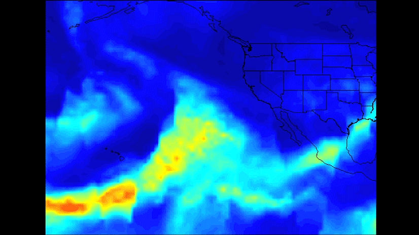 The images of atmospheric water vapor were collected by AIRS between January 7 and 11. They show the amount of moisture present in the atmosphere and its movement across the Pacific Ocean to the United States, where much of it fell as rain or snow.