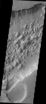 Note: this THEMIS visual image has not been radiometrically nor geometrically calibrated for this preliminary release. An empirical correction has been performed to remove instrumental effects. A linear shift has been applied in the cross-track and down-track direction to approximate spacecraft and planetary motion. Fully calibrated and geometrically projected images will be released through the Planetary Data System in accordance with Project policies at a later time.