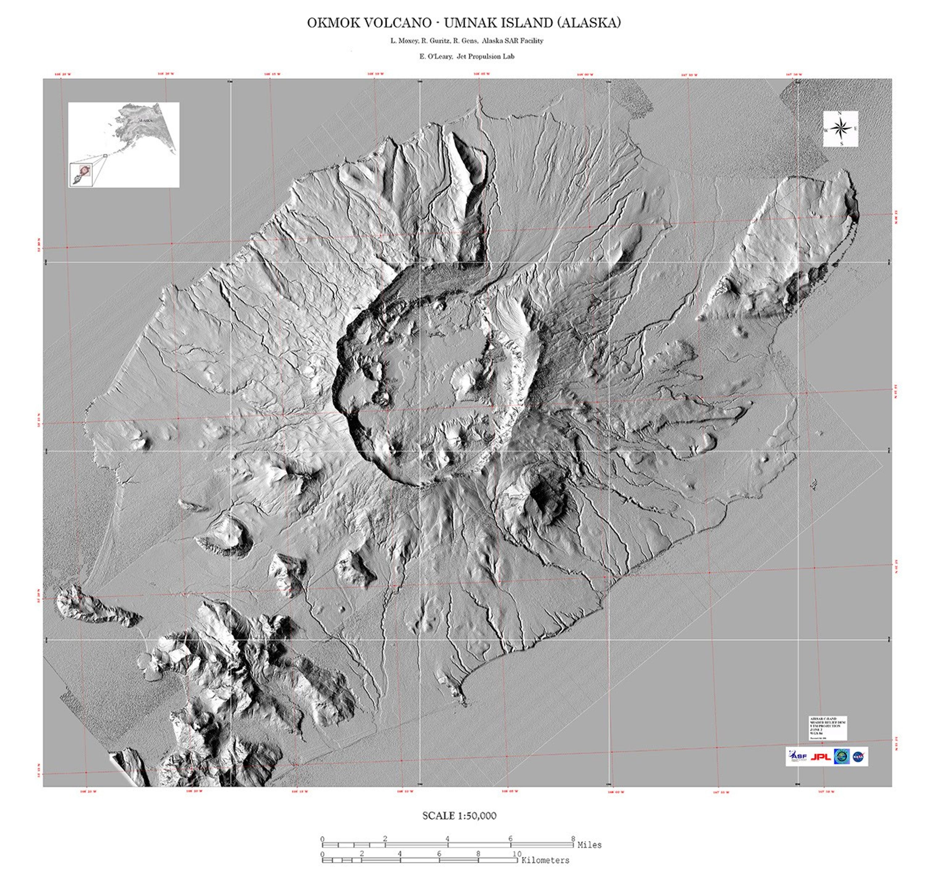 This image is a shaded relief mosaic of Umnak Island in Alaska's Aleutian Islands.