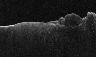 This radargram shows data collected by the Shallow Radar, or SHARAD, on NASA's Mars Reconnaissance Orbiter (MRO) on May 2, 2023, as it performed a 120-degree roll maneuver called a "very large roll" over a formation named Medusae Fossae. Scientists used SHARAD to look for ice beneath the surface of this region.