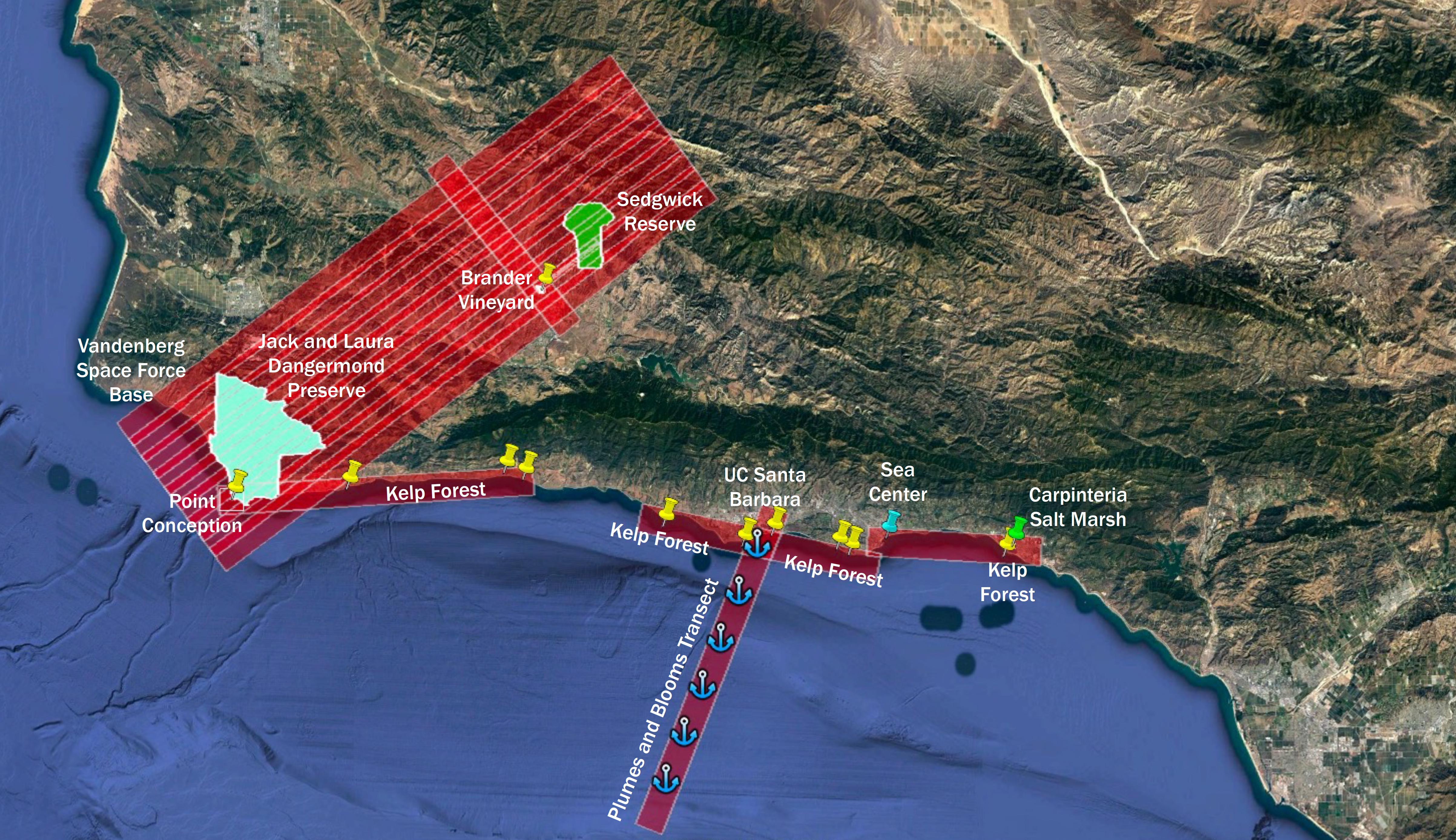 The aerial portion of SHIFT flies on an approximately weekly basis over the study area, which includes the Jack and Laura Dangermond Preserve, owned by The Nature Conservancy, and the Sedgwick Reserve, operated by UCSB. SHIFT combines the ability of airborne science instruments to gather data over widespread areas with the more concentrated observations scientists conduct in the field to study the functional characteristics, health, and resilience of plant communities.