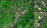 This ASTER image, acquired on June 1, 2008, shows two of the new large landslide dams and lakes upstream from the town of Chi-Kua-Kan at 32º12'N latitude and 104º50'E longitude. Vegetation is green, water is blue, and soil is grayish brown in this enhanced color view. New landslides appear bright off-white. The northern (top) lake is upstream from the southern lake. Close inspection shows a series of much smaller lakes in an elongated "S" pattern along the original stream path. Note especially the large landslides that created the dams. Some other landslides in this area, such as the large one in the northeast corner of the image, occur only on the mountain slopes, so do not block streams, and do not form lakes.