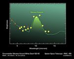 This plot of data from NASA's Spitzer Space Telescopes shows that asteroid dust around a dead "white dwarf" star contains silicates—a common mineral on Earth. The data were taken primarily by Spitzer's infrared spectrograph, an instrument that breaks light apart into its basic constituents. The yellow dots show averaged data from the spectrograph, while the orange triangles show older data from Spitzer's infrared array camera. The white dwarf is called GD 40.