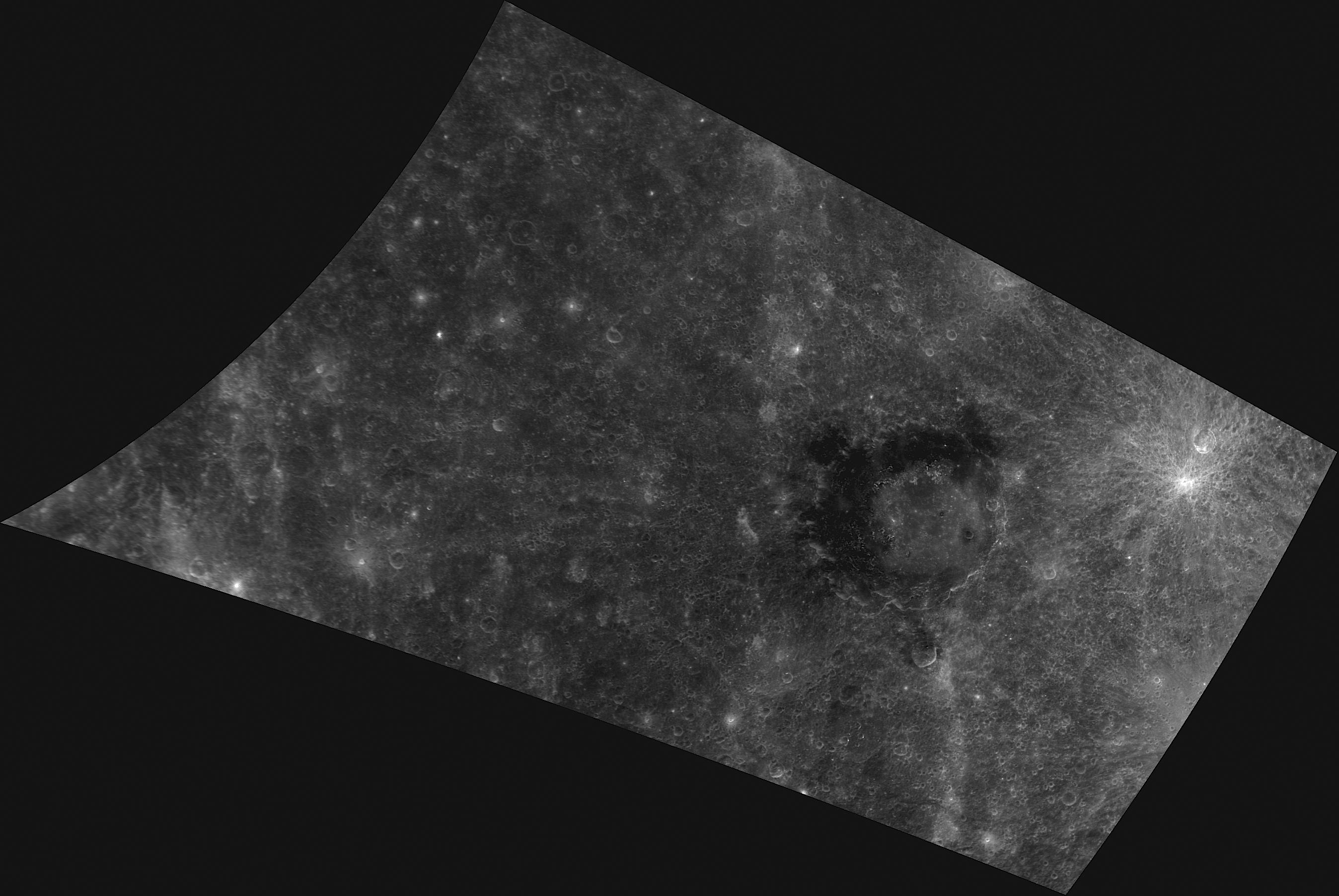This image, taken with the Wide Angle Camera (WAC), gives us a close-up look at Derain crater. Named for the twentieth century French artist André Derain, this crater was first viewed during MESSENGER's second flyby. Its unique dark collar is made up of low-reflectance material (LRM) exposed during the impact that formed the crater; this material is some of the darkest identified on Mercury and may have a mineralogical composition that is different from the surrounding terrain.