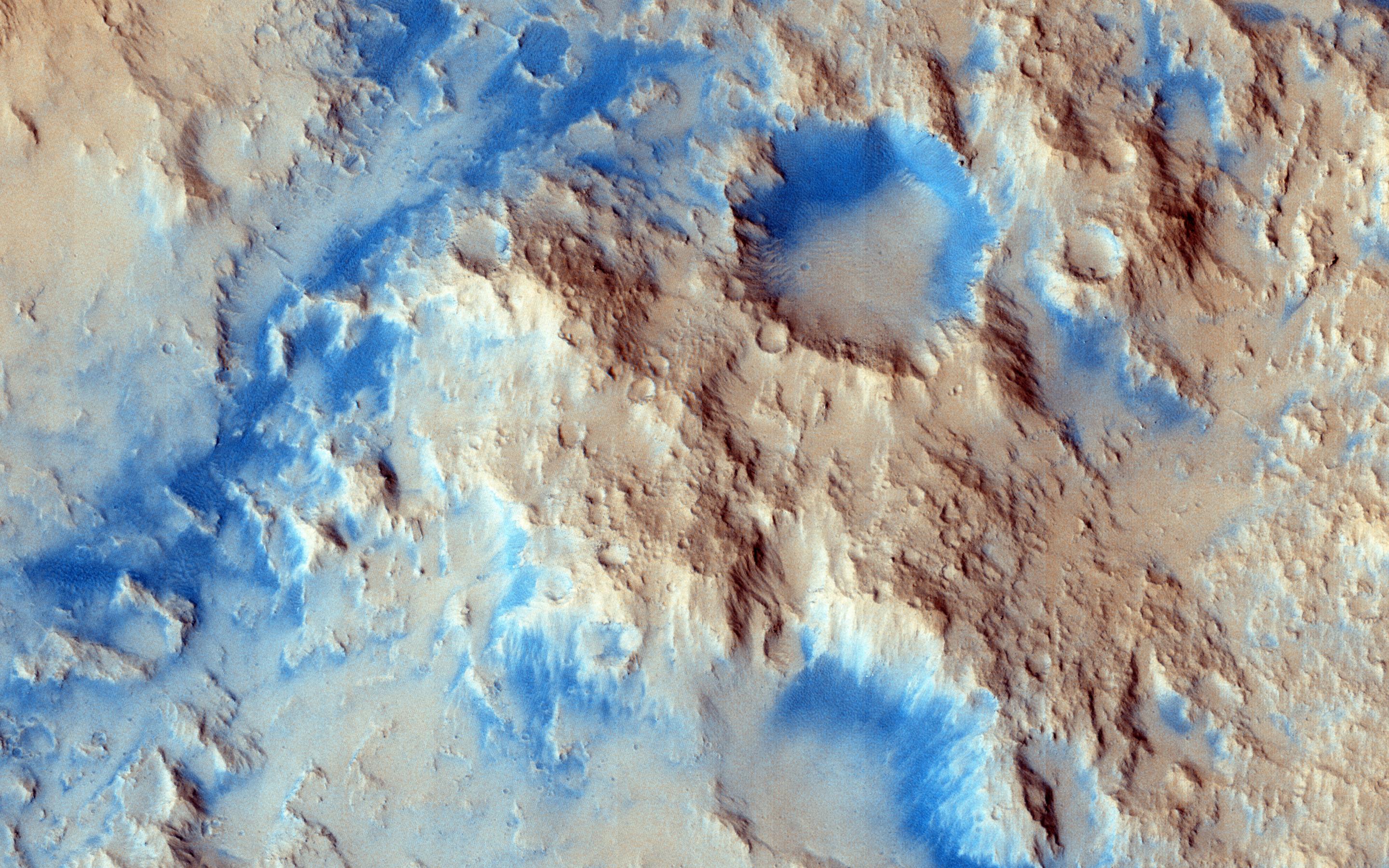 We can also see an inverted channel system, possibly ponded toward the southwest. As we've learned recently, it's possible that perhaps a fluid was in part of this crater, as is hypothesized for Gale Crater (see artist rendition picture) where Curiosity is exploring. At high resolution, we might be able to resolve fine-scale layering/bedding and/or large, transported clasts (boulders).