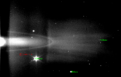 The (narrow) ring visible in the images is the G ring, and the G ring arc passes through the field of view during the course of the movie. Calypso, a Trojan moon of Tethys, is also visible in the sequence. Trojan moons are found near gravitationally stable points ahead or behind a larger moon.