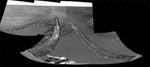 Two sols earlier, Opportunity drove 94.55 meters (310 feet) south-southwestward before stopping when the rover detected that its wheels were slipping more than the limit that engineers had set for the drive. That Sol 1865 (April 23, 2009) drive created the tracks that enter this scene from the left and ended with wheels on the left side of the rover partially embedded in the ripple. On Sol 1866, Opportunity began to back away from this potential trap, but moved only about 28 centimeters (11 inches). On Sol 1867, the rover backed up 3.7 meters (12 feet) before taking this picture. Subsequently, Opportunity proceeded on a path avoiding the ripple where the wheel slippage occurred.